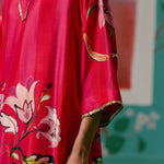 Vivid and graceful, the Fuschia Striped Floral Kaftan Set is crafted for a festive statement.