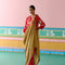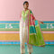Elegant yet contemporary, the Lime Green Paisley V-neck Kurta Set is a true festive standout. Crafted in airy Chanderi with delicate organza detailing on the sleeves and pants, the kurta is elevated with lace inserts along the neckline and sleeves.