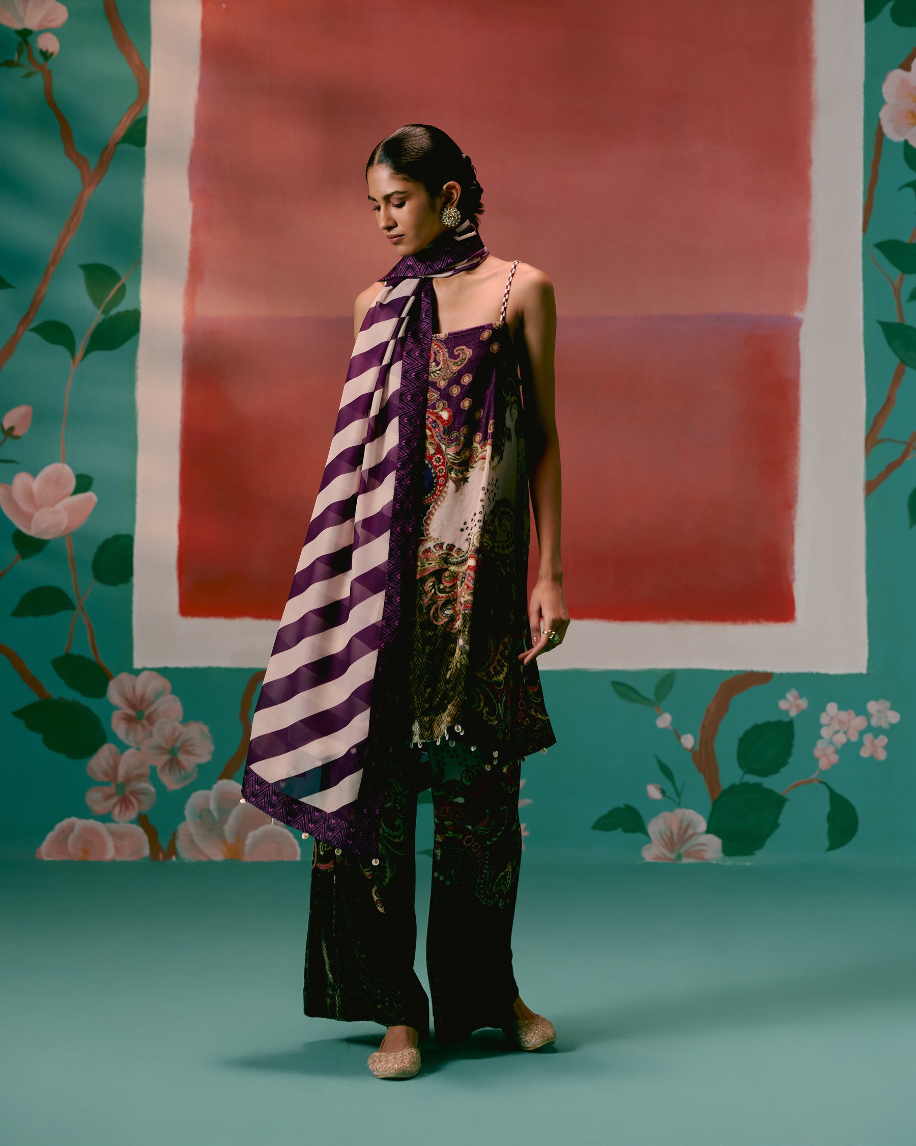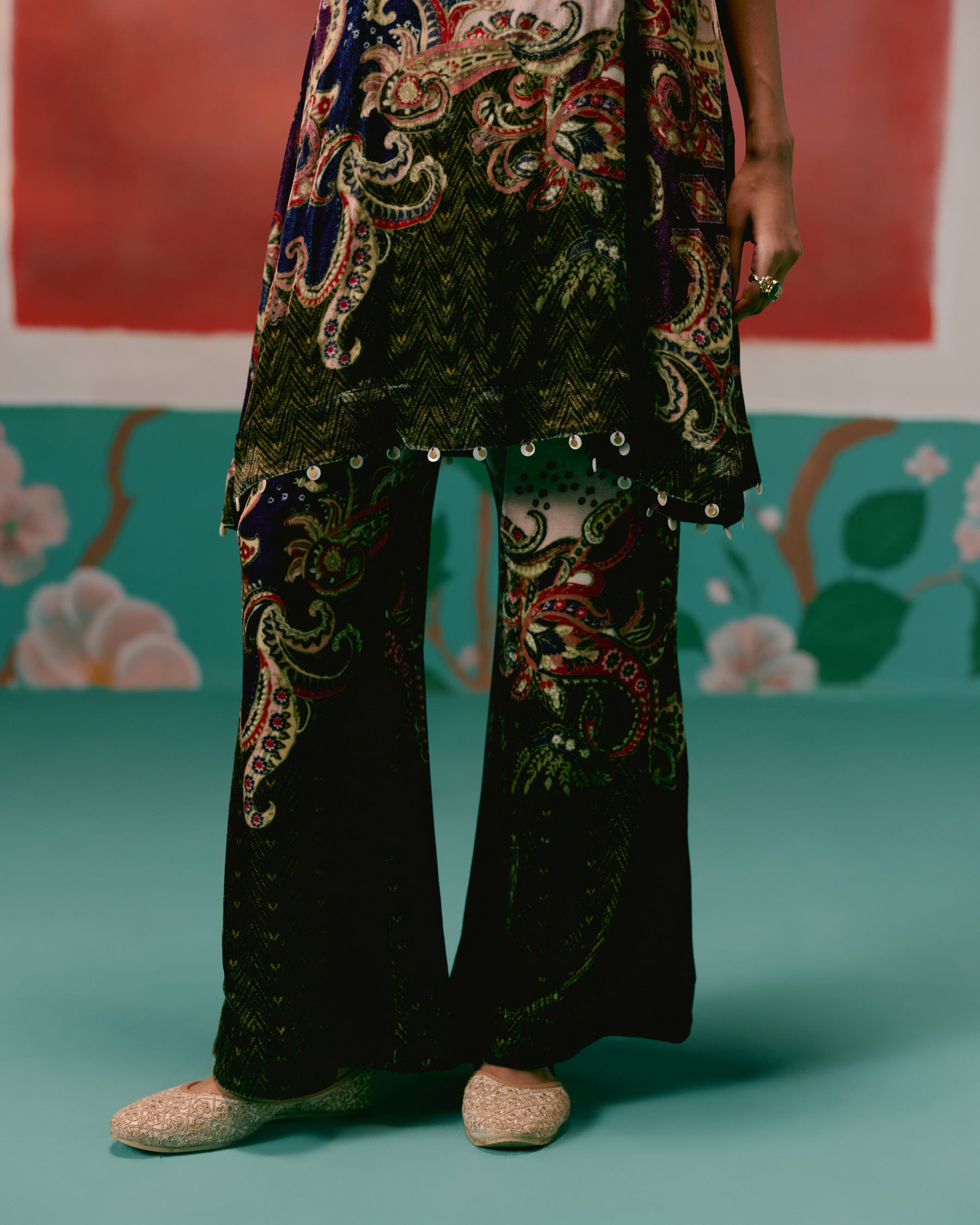 Striking and contemporary, the Olive & Purple Paisley Kurta Set redefines festive elegance in plush velvet.