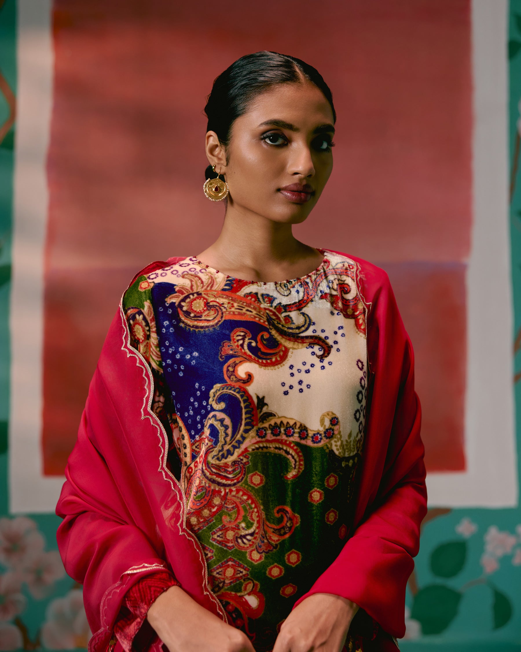 Opulent and timeless, the Paisley Velvet Kurta Set captures the essence of festive elegance.
