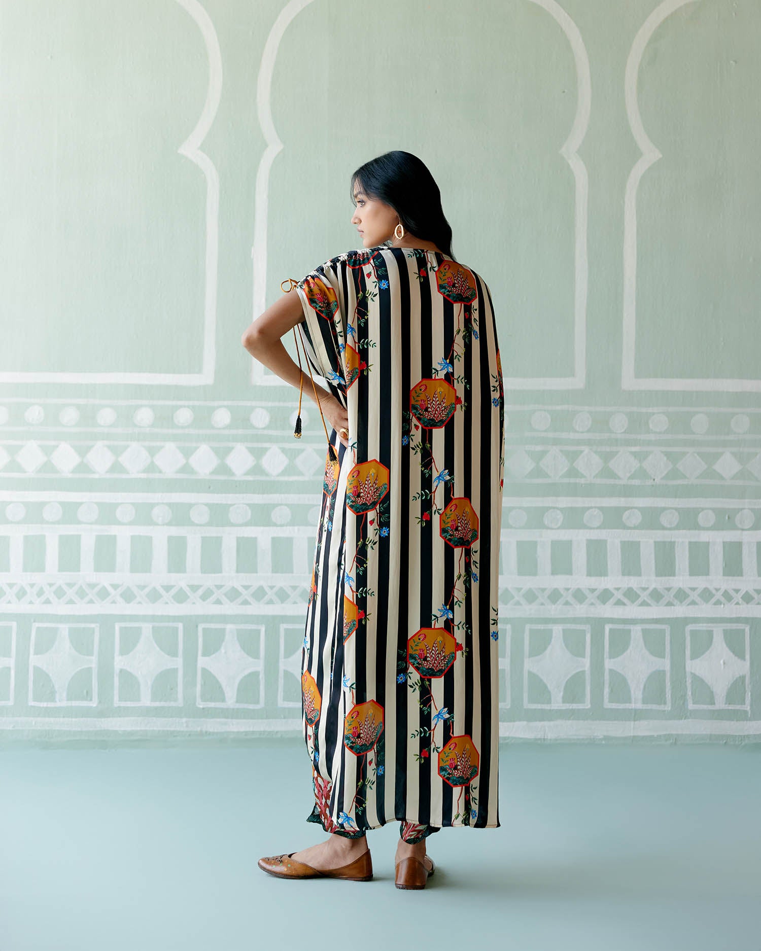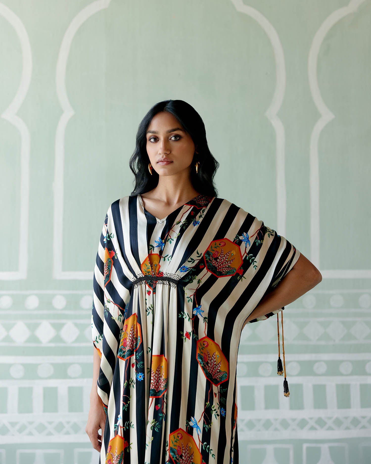 Black & White Striped Kaftan Set