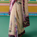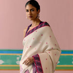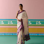 Ecru and Purple Ikkat Saree