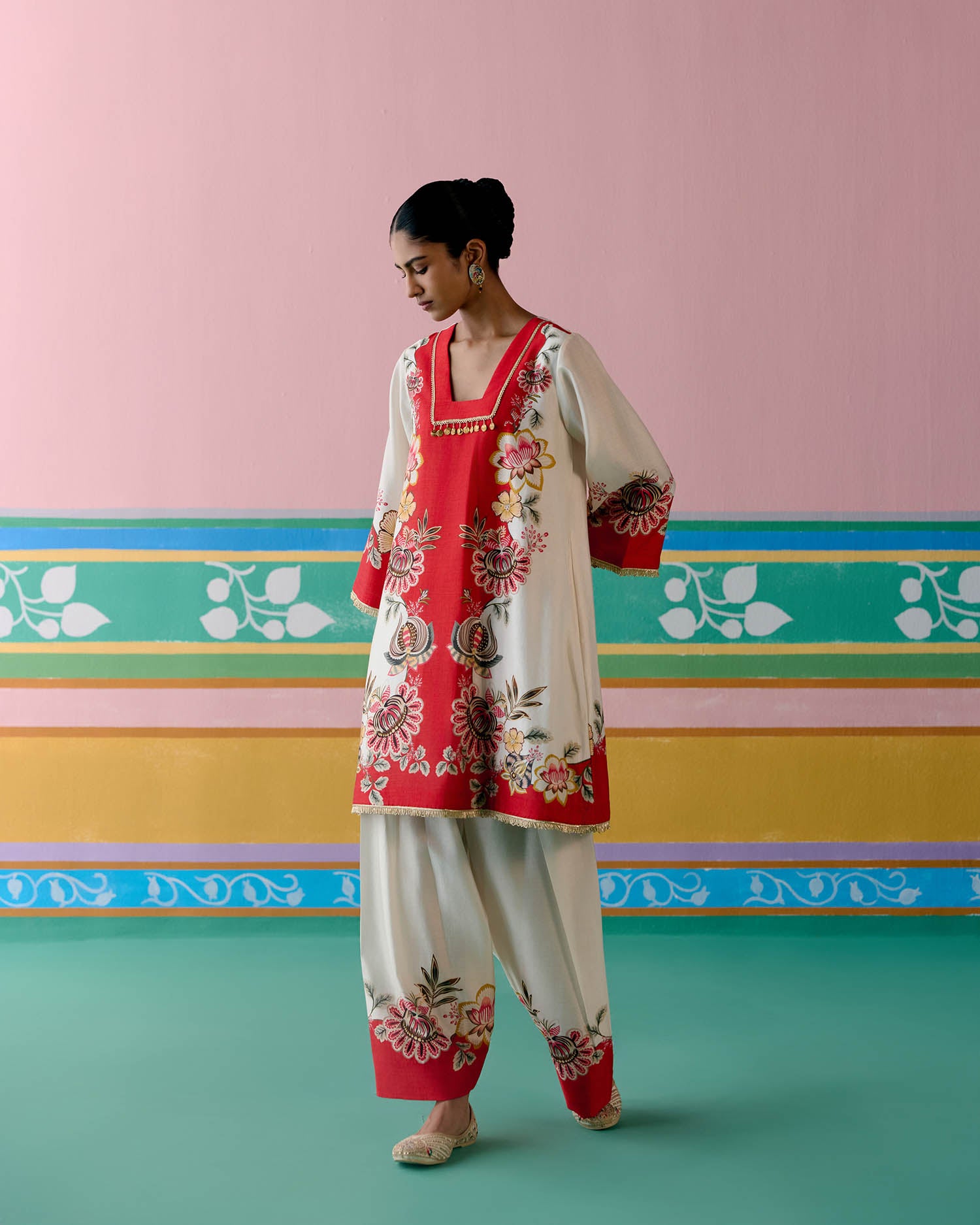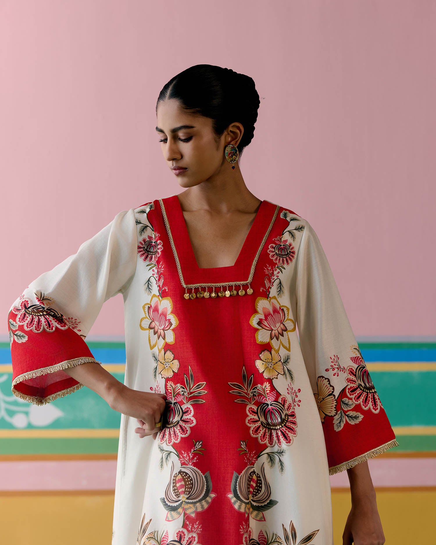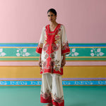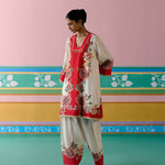Ecru & Red Square Neck Kurta Set