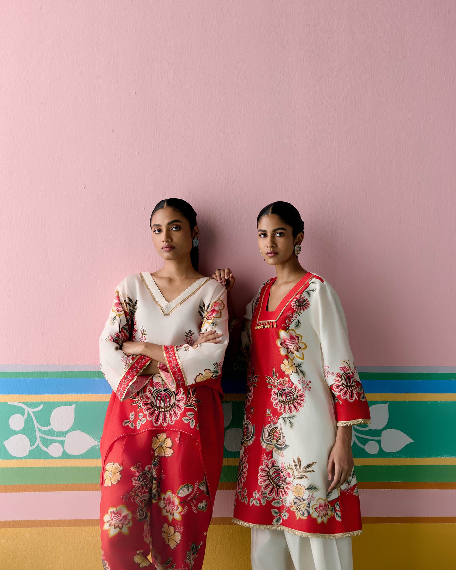 A graceful blend of charm and sophistication, the Ecru & Red Square Neck Kurta Set is designed to elevate your festive style.