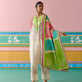 Fine pintucks on the organza sleeves and pants add subtle texture, while the elasticated back on the pants ensures effortless comfort. Paired with a tissue dupatta edged in a full lace border, this set strikes the perfect balance of sophistication and ease—ideal for celebrations that call for understated glamour.