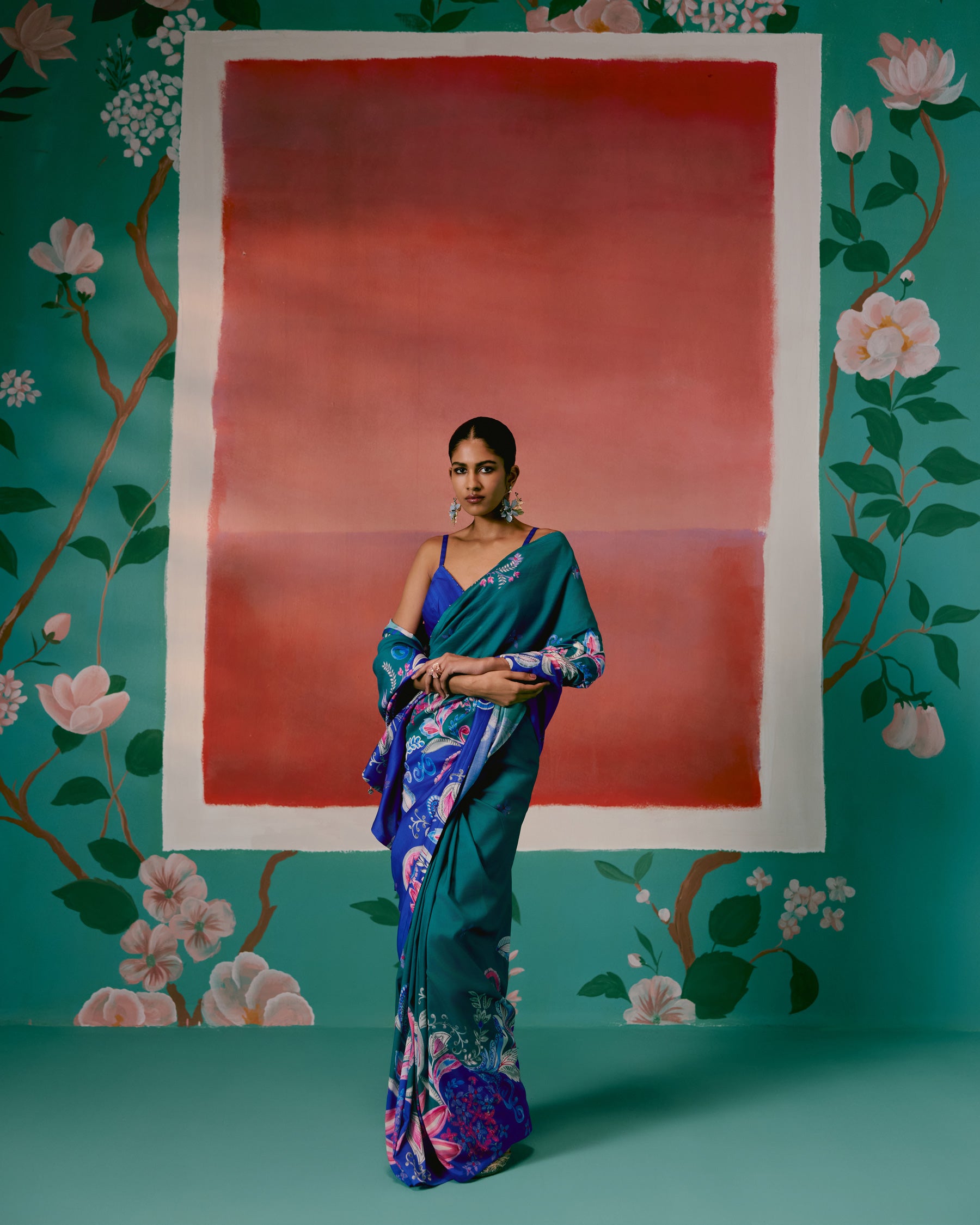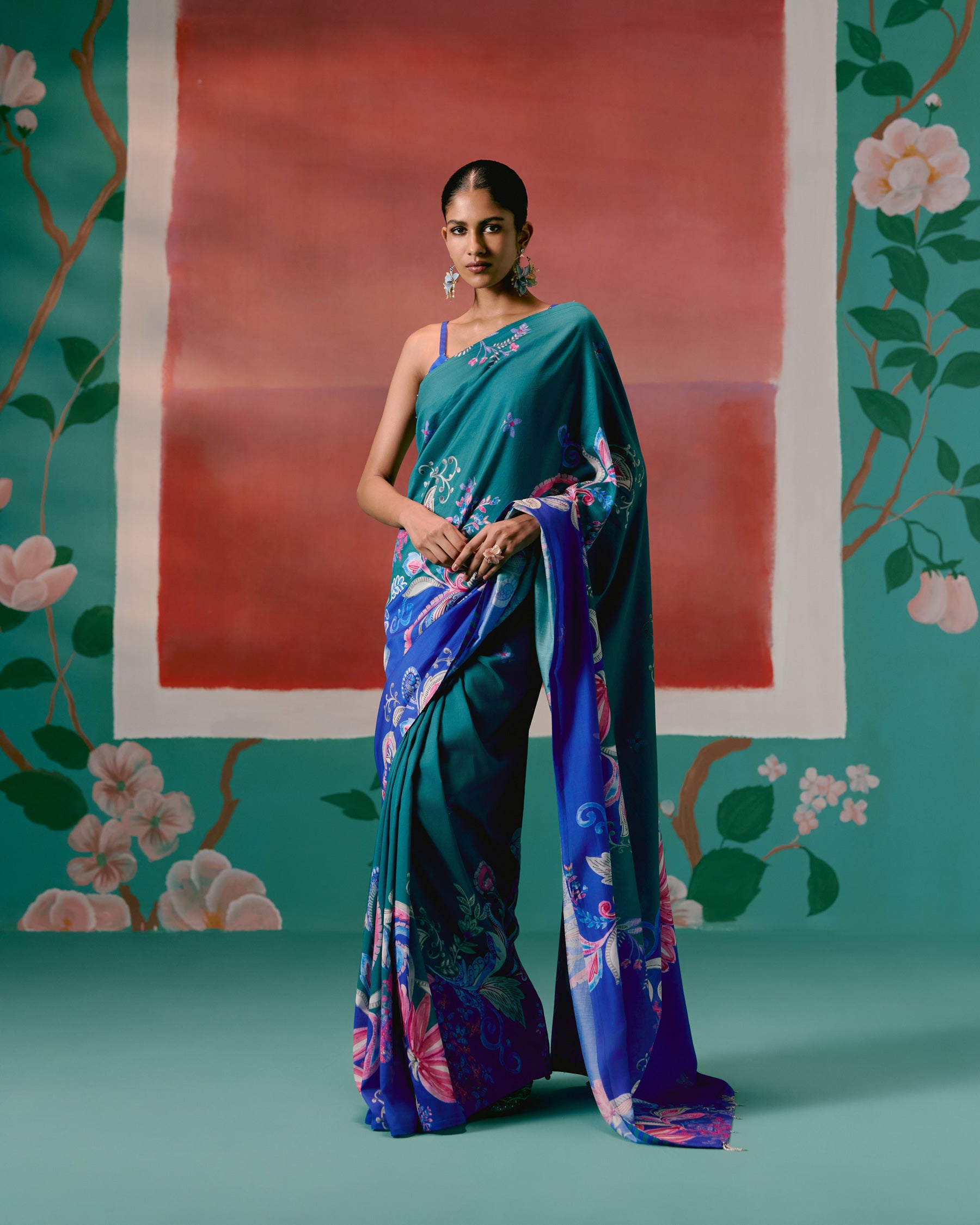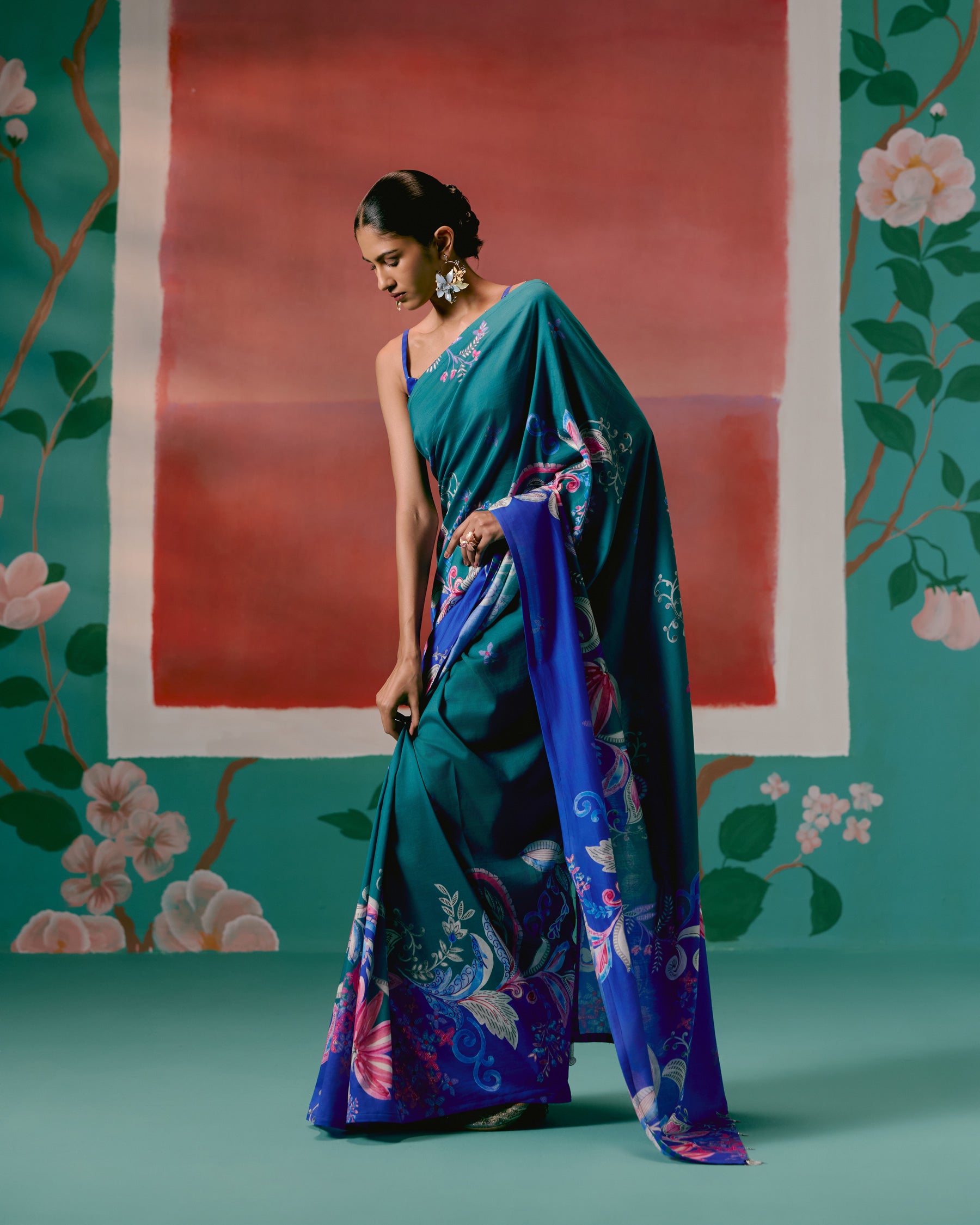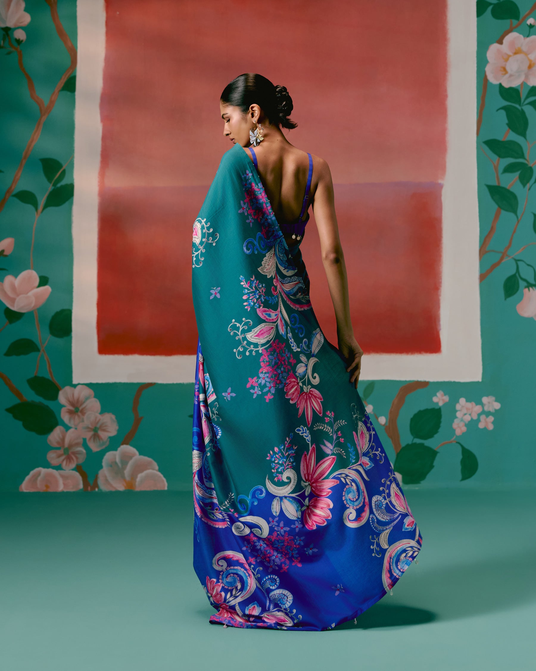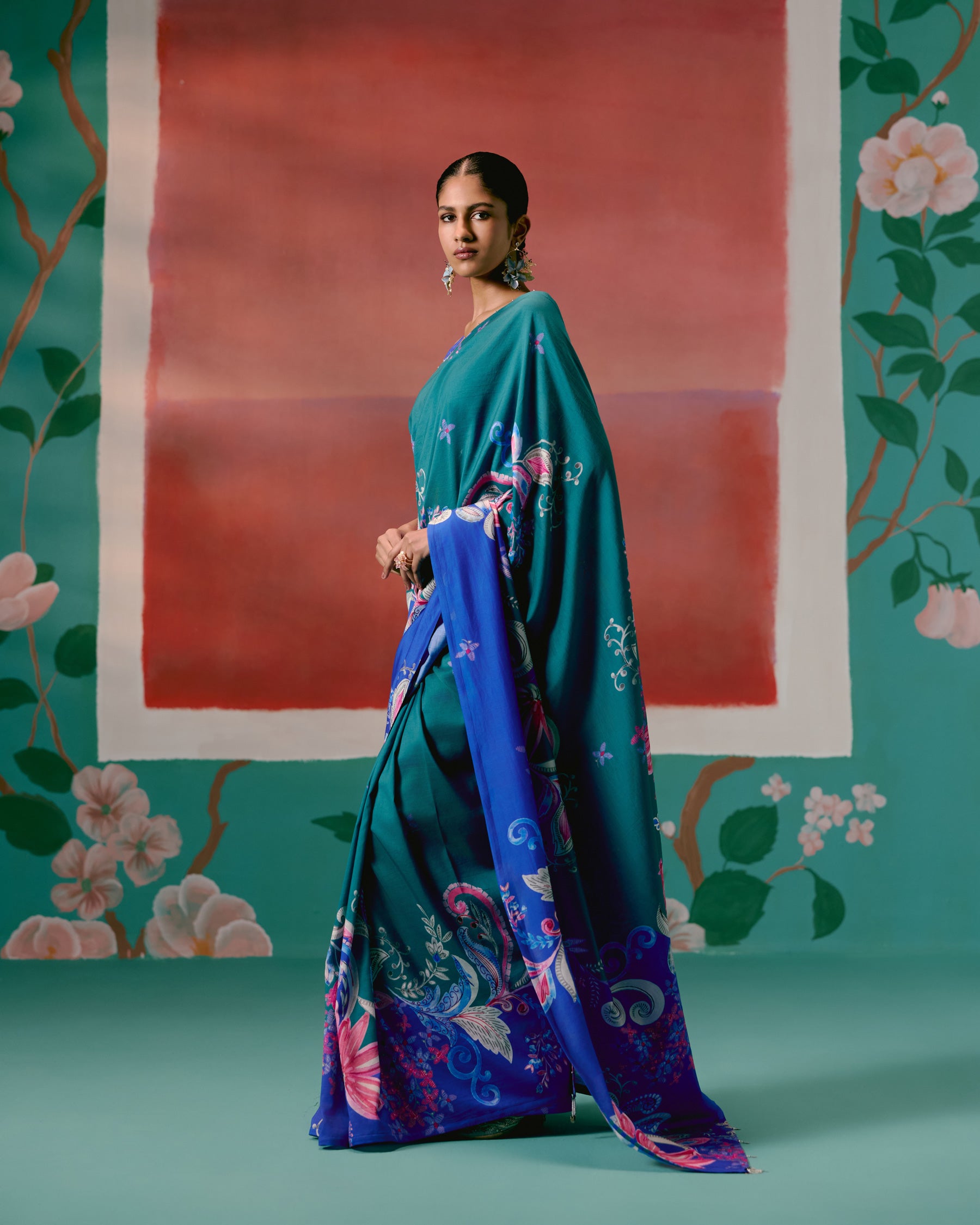 Teal & Blue Paisley Saree