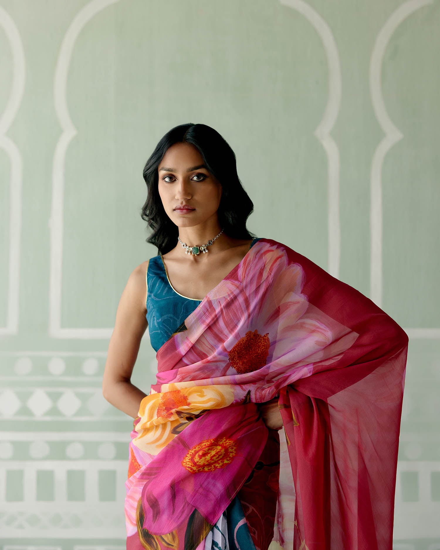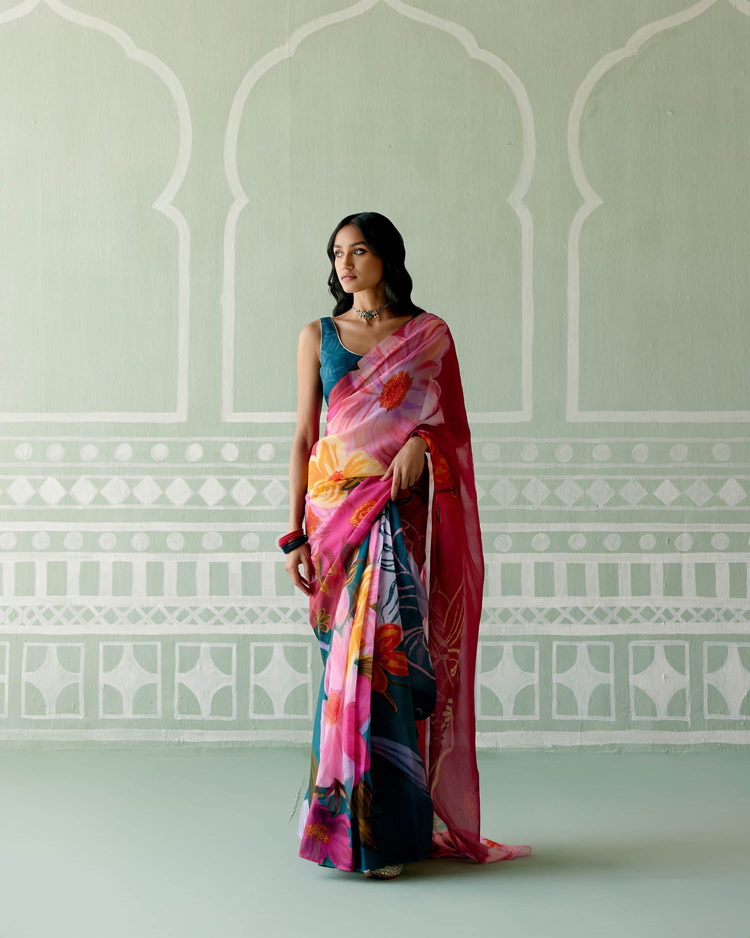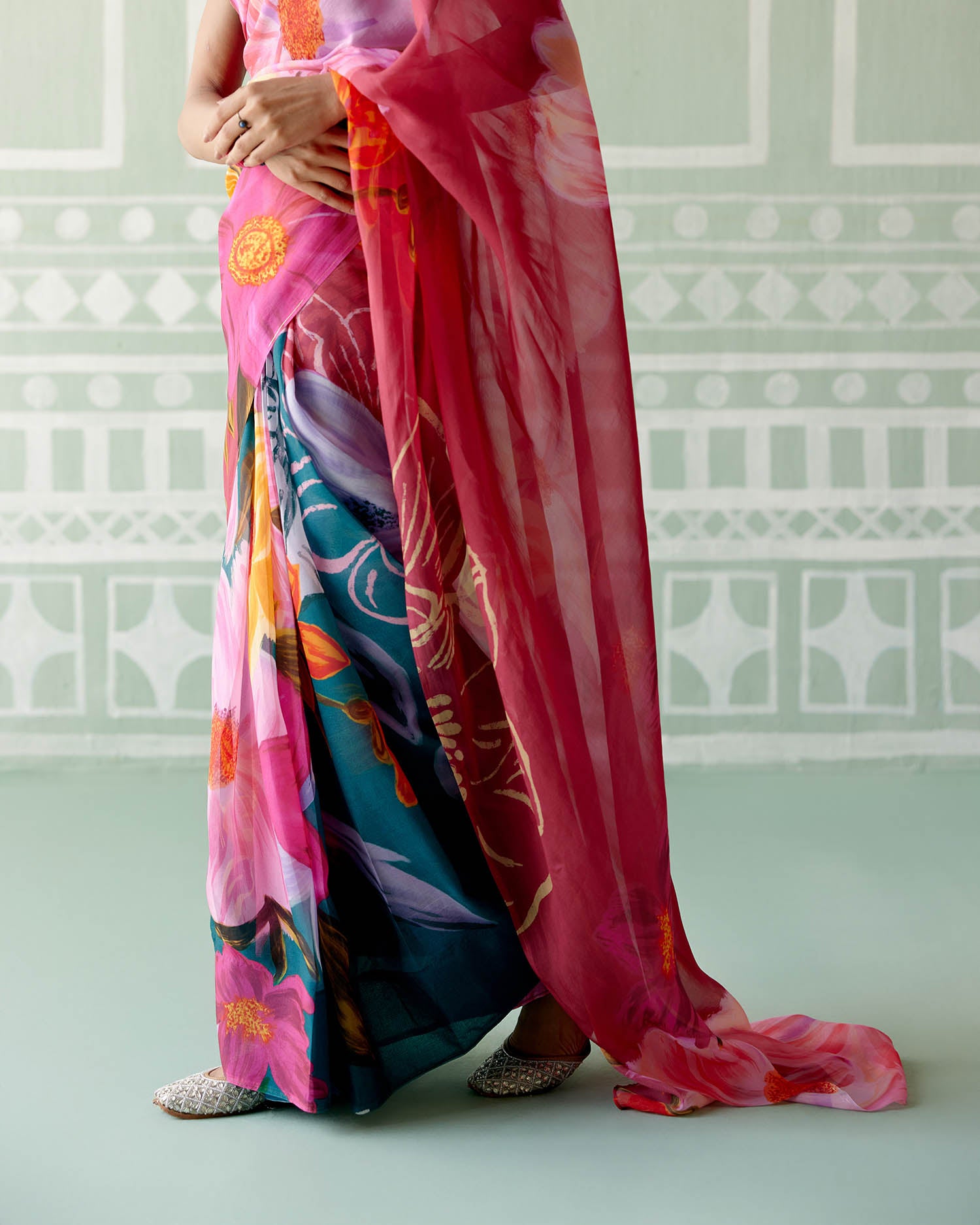 Teal & Fuschia Floral Saree