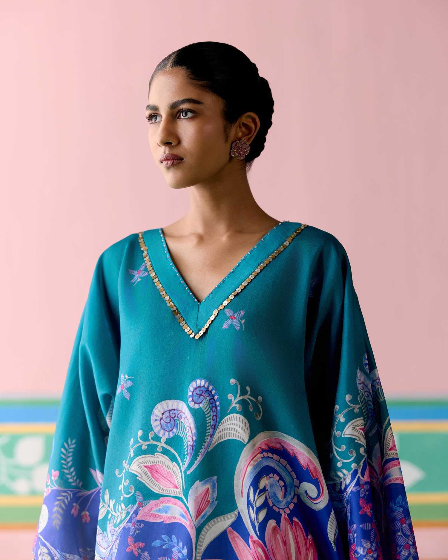 Teal Paisley Kaftan Set